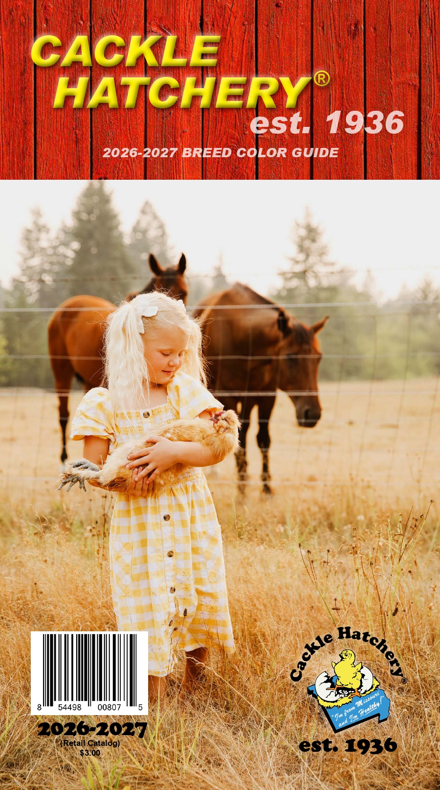 2026 Color Guide Catalog does not have pricing or mail-in order forms enclosed. You will need to reference cacklehatchery.com to access the most current pricing. Mail-in order forms for those in need are available below. Please order online or call-in if you wish to order poultry breeds in the guide.