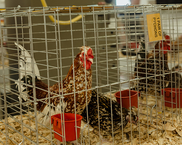 Every year during the chicken festival, we auction off chickens with proceeds going to organized youth poultry groups. This is a traditional silent auction with bid sheets. Come and browse the beautiful birds that we are auctioning off. Be a part of the bidding for a good cause. The chickens pictured are from years past.