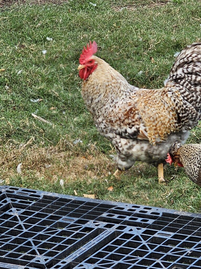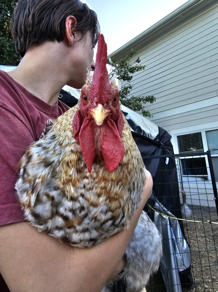 I only have a rooster (named Rick). And is the biggest baby I’ve ever had among roosters. He’s pretty big and entertaining with his whispy tail feathers.