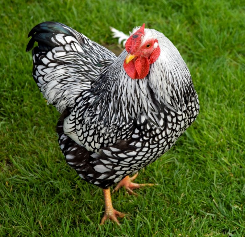 Admitted to the American Standard of Perfection in 1883. These originated in New York State and are the parent variety of all the other Wyandottes colors. The Black Laced Silver Wyandotte chickens are a docile bird with clean legs and mostly black laced silvery white feathers and black tail. They have a red rose comb, earlobes and wattles. They will on occasion go broody and they make excellent mothers. They work well in confinement or free range and are a great back yard chicken. They lay a medium to large egg and are a production type and not show type. Cackle Hatchery® does offer an exhibition/show type at Black Laced Silver Wyandotte Exhibition/Show Type. To learn more about the difference between production type and exhibition type click here.