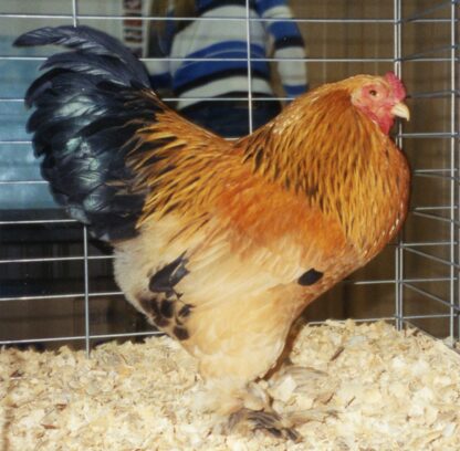 The miniature size of the Buff Brahma Standard chicken, this variety of the Brahma breed was recognized by the American Poultry Standard of Perfection in 1946. A very friendly and tame chicken breed that is very kid friendly and that shows very well. The Buff Brahma Bantam chicken has feathered feet, red pea comb, buff colored with black around neck, wing tips and tail. They are hardy in hot or cold conditions.