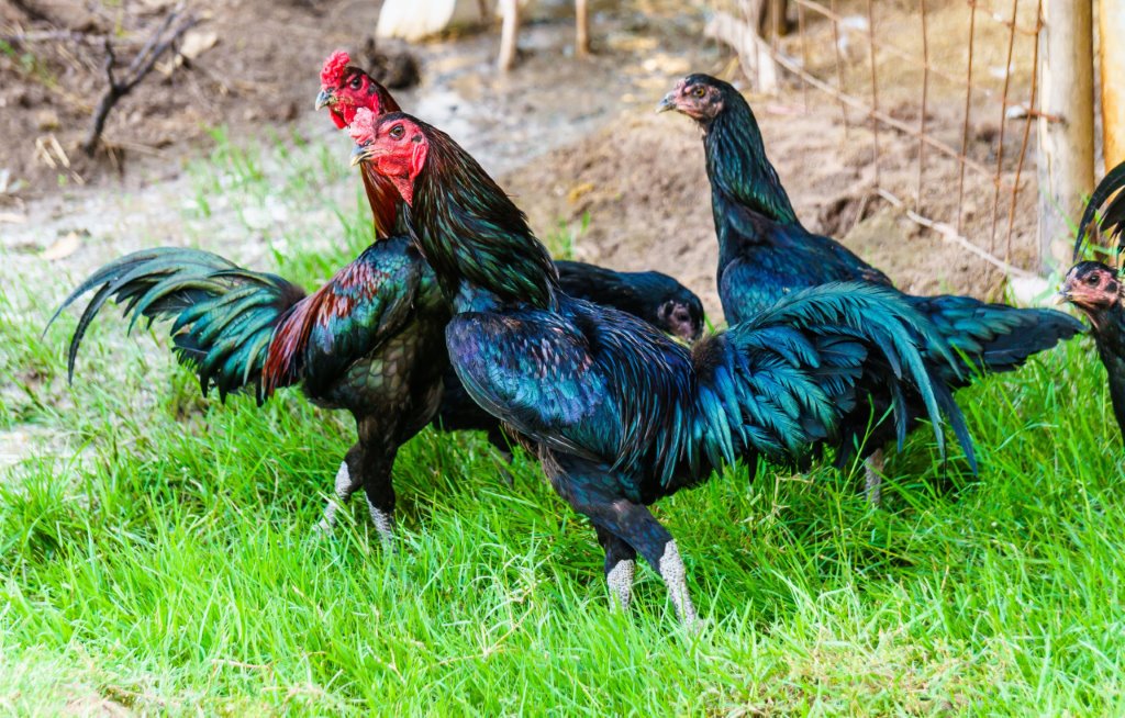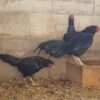 Cackle Hatchery’s Dark Aseel can come solid black or have some red in the neck and back hackle.