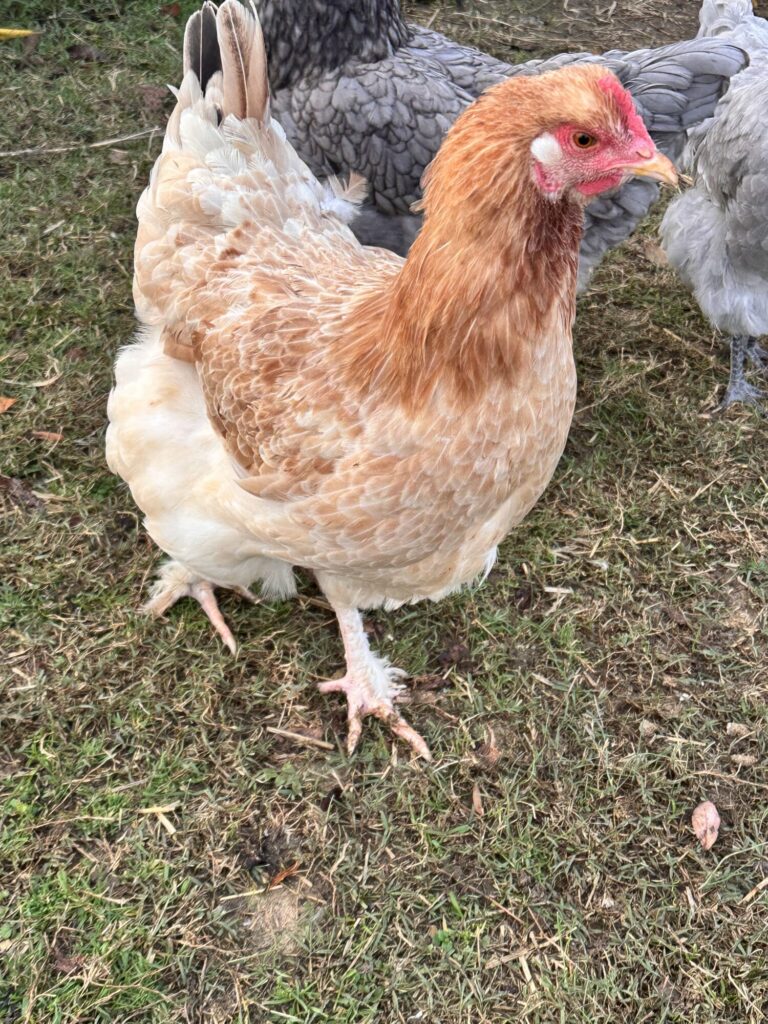 Good layer, has been broody recently, but who doesn’t get broody once in a while? Still always gentle and friendly with me and my girls. Couple leg feathers but clean feet. As always, Cackle Hatchery delivered with great healthy birds.