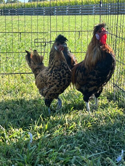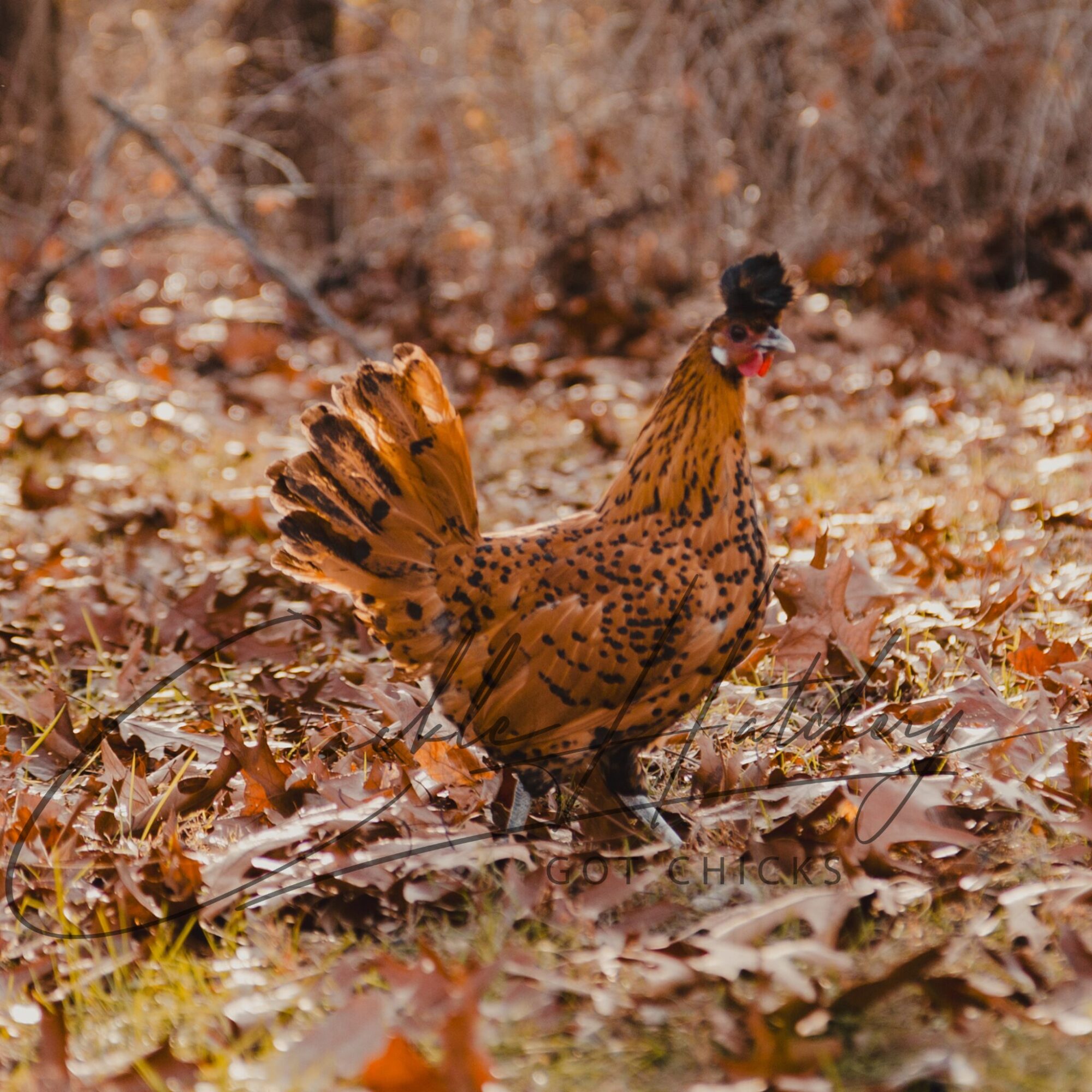 One of the best breeds to raise! Very hardy. I ordered 4 and received 5! Fun little birds…very inquisitive. Their crazy feather hats are so comical! Great addition to my established flock!