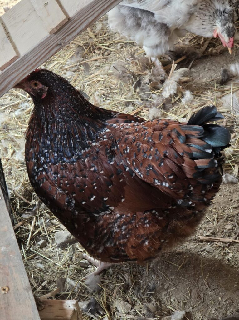 I am very pleased with the feather patterns on these hens. They are a calm breed compared to the other breeds I have. So very happy with them. All chicks, even the extra one, survived the trip and were in good shape when they got here. Almost ready to start laying. A lovely addition to our small flock.
