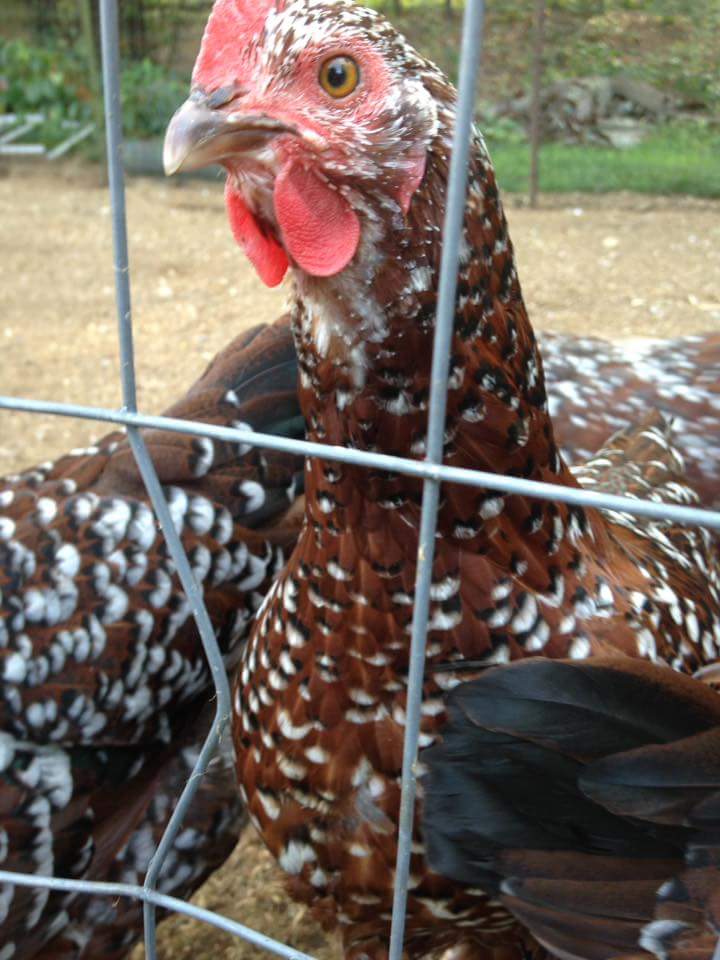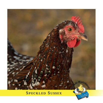 This Speckled Sussex chicken originated in the county of Sussex and is a very old English breed and recognized as a distinct breed in 1914. The Sussex is a very gentle and colorful bird. This variety of the Sussex breed makes for a good backyard chicken and dual purpose for meat or egg production. This bird is a very good layer and handles confinement well. Their speckled coloring makes them blend in with the background and camouflages them from predators such as coyotes and foxes. With each yearly molt more speckles appear so they become even more colorful the older they get.