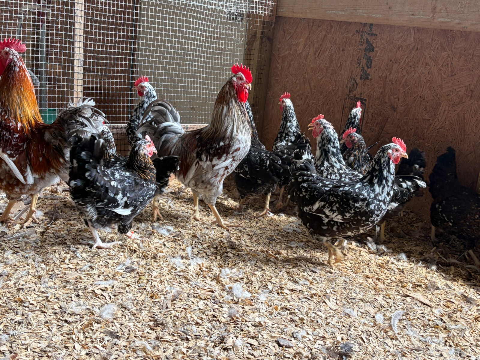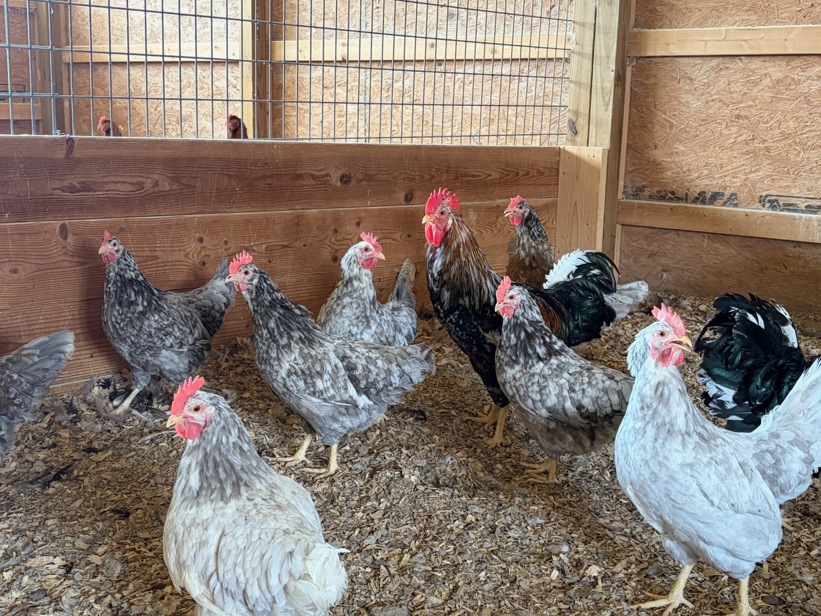 Swedish Flower Hen chickens are good foragers. They are predator wary, and the roosters are particularly alert. Plus their plumage pattern helps them blend into the environment, making them less visible to predators.