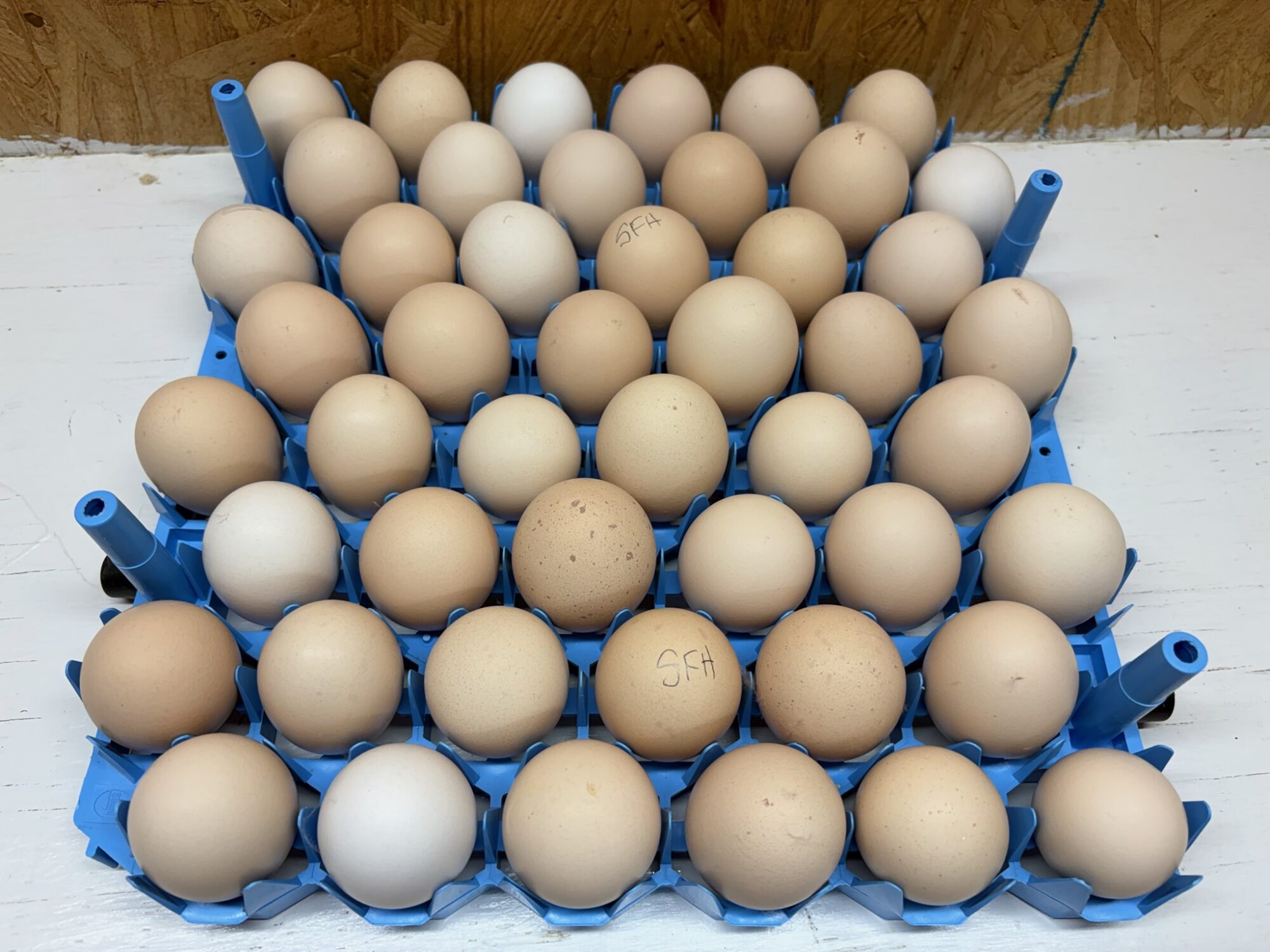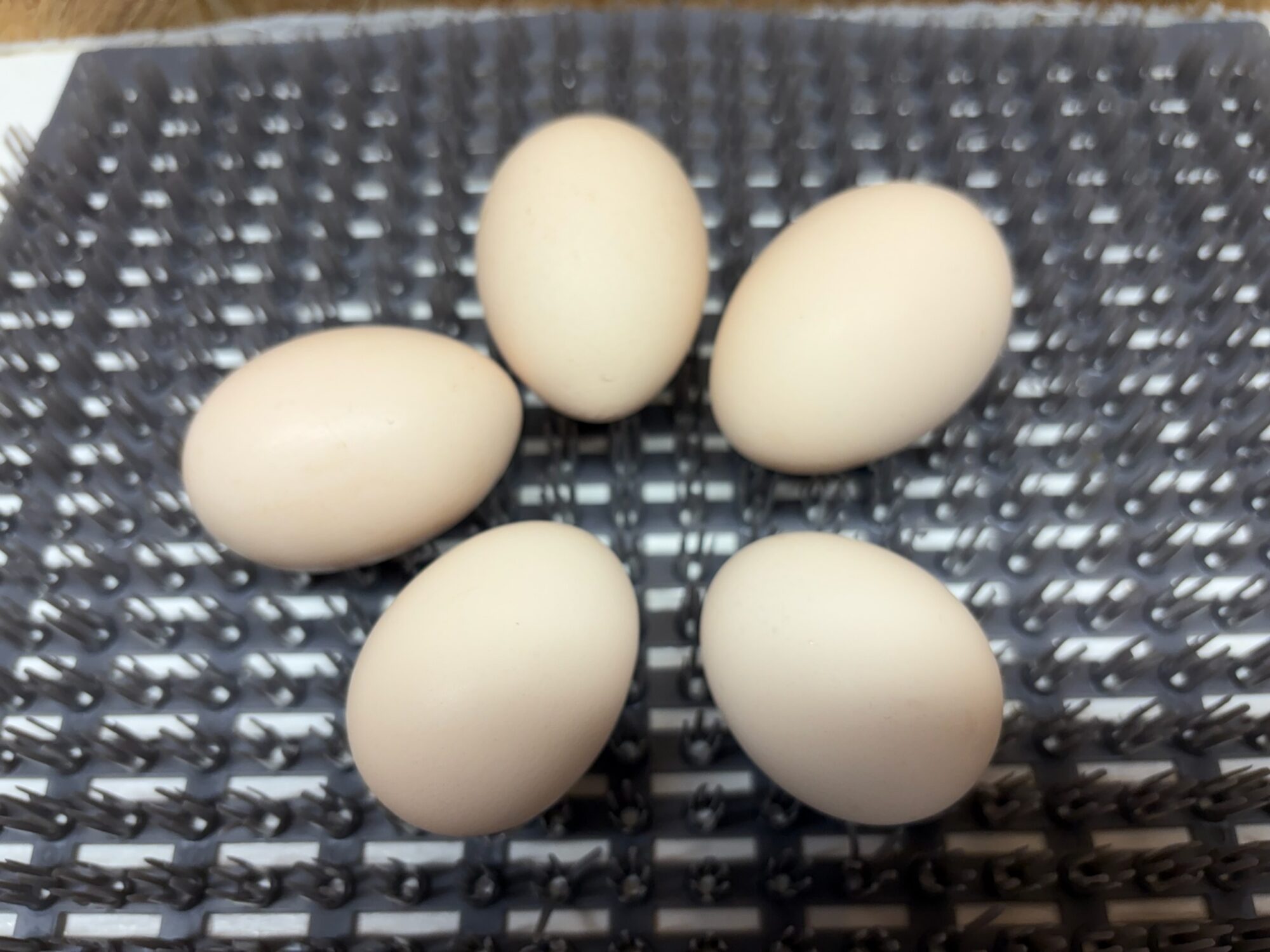 Swedish Flower Hens start out laying small eggs at the age of about 17 weeks. By the time they are fully mature they may lay extra large eggs.