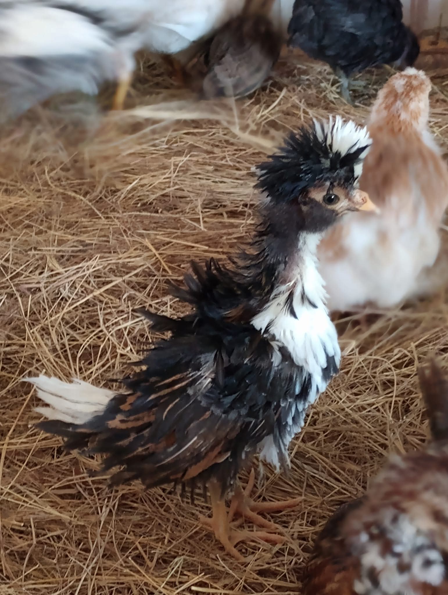 Our Cackle Hatchery® Tolbunt Polish bloodline has mostly smooth feathers with a few frizzles. These birds have soft feathers, large crests, and a small V-shape comb. Some are bearded and some are non-bearded. For our Chick Season in 2024 and beyond we will be focused on 100% bearded and smooth feathers. As with any breeding project, it is a work in progress.